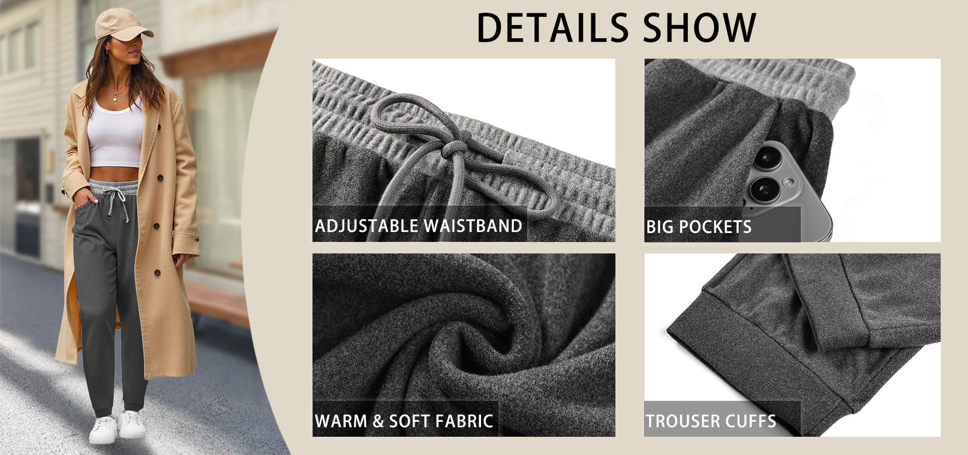 ❤️Occasions: These women's pants are perfect for a wide range of relaxed settings—wear them for lounging at home, casual family gatherings, light morning walks, yoga sessions, travel,autumn and winter daily wear These joggers effortlessly blend comfort, warmth, and function for everyday casual and leisure wear. JYY850