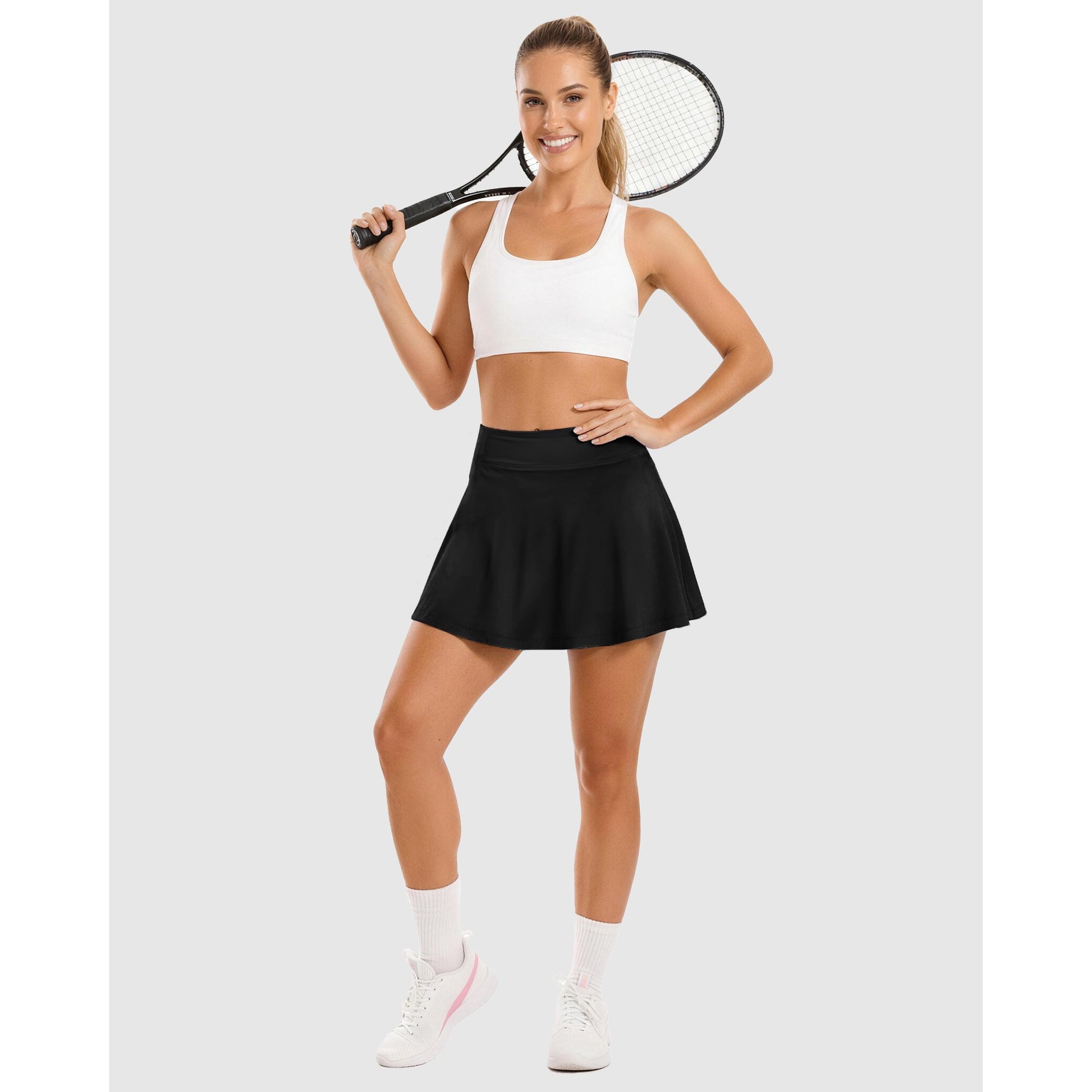 Stay stylish and performance-ready in this women’s high-waisted pleated tennis skirt featuring built-in shorts, a wide tummy-control waistband, and moisture-wicking quick-dry fabric. Designed with a flattering ruffle silhouette and secure inner pocket, this athletic golf skort offers full coverage, enhanced mobility, and all-day comfort for tennis, golf, running, workouts, yoga, and everyday summer outfits. Perfect for Y2K, preppy, and ballet-core fashion lovers, this cute active skort pairs effortlessly with tanks, tees, or sports tops—your go-to sporty-chic skirt for the court, gym, school, or vacation.